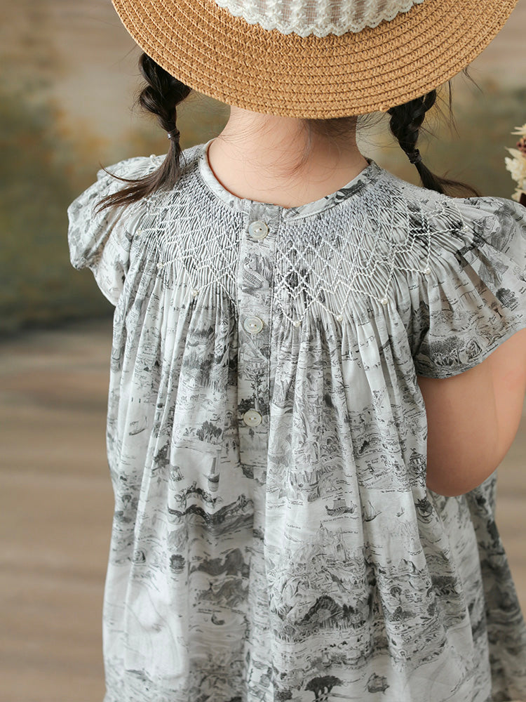 - Handmade smocking at the neckline highlights the details.
