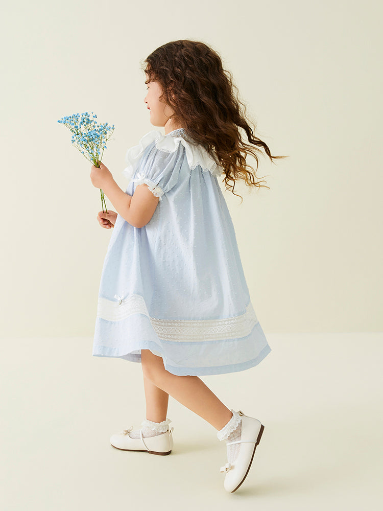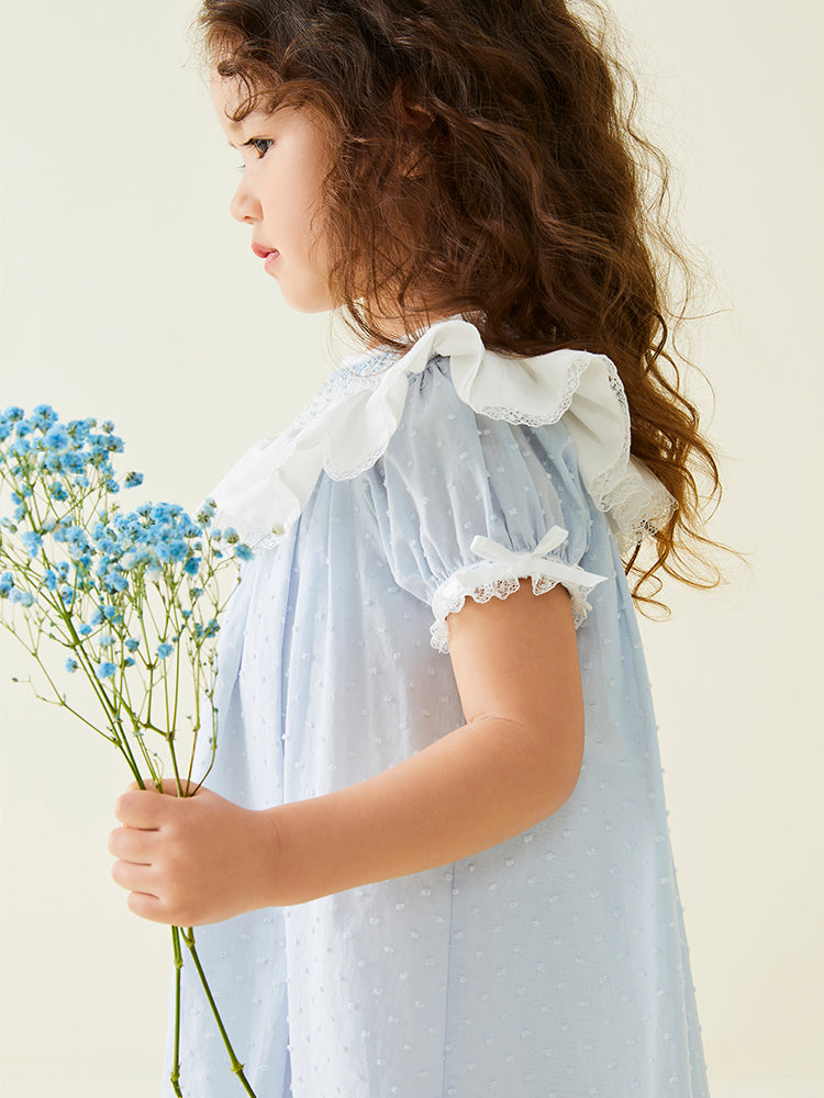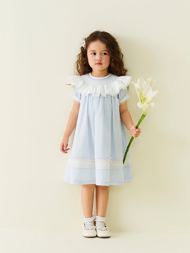 - Made from pure cotton fabric, the dress features a color gradient embroidery, with delicate hand-pleated embroidery adorning the Bishop collar.