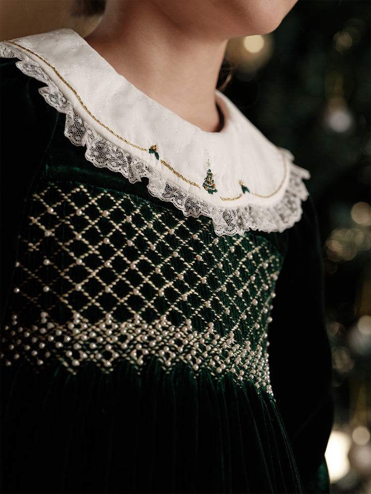 - Handmade smocking features gold pearls, creating a visually stunning and exquisite appearance.