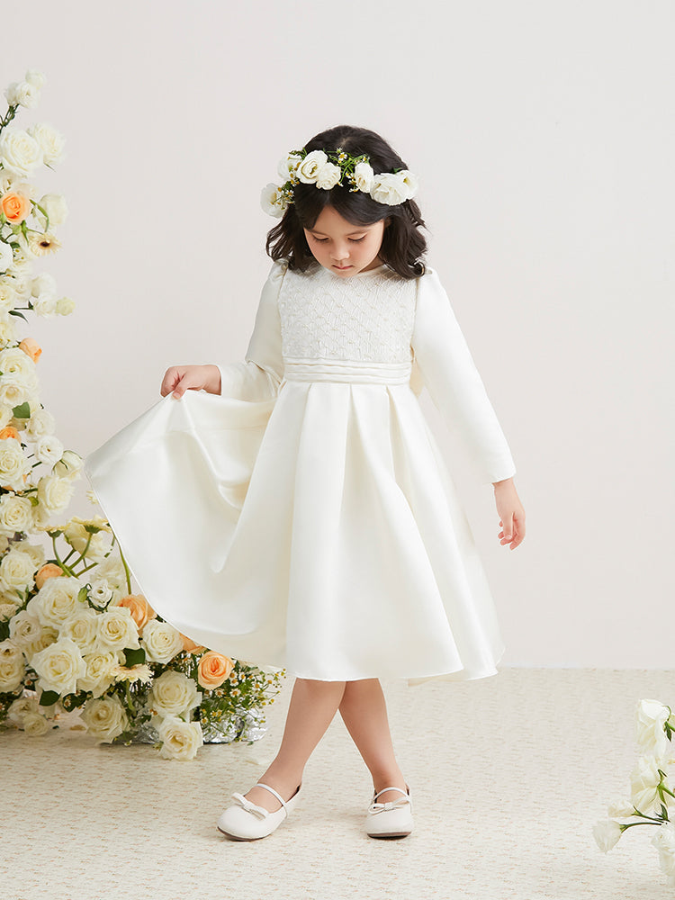 - Handmade smocking paired with pearls, visually displaying exquisite, while the hand-pleated tucks at the waist add a sense of lively beauty.
